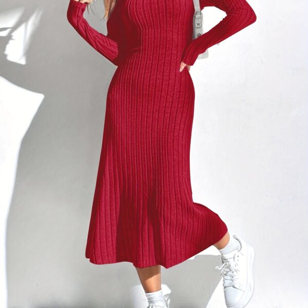 Thread Knitted Sunken Stripe Long Sleeve Big Hem Dress