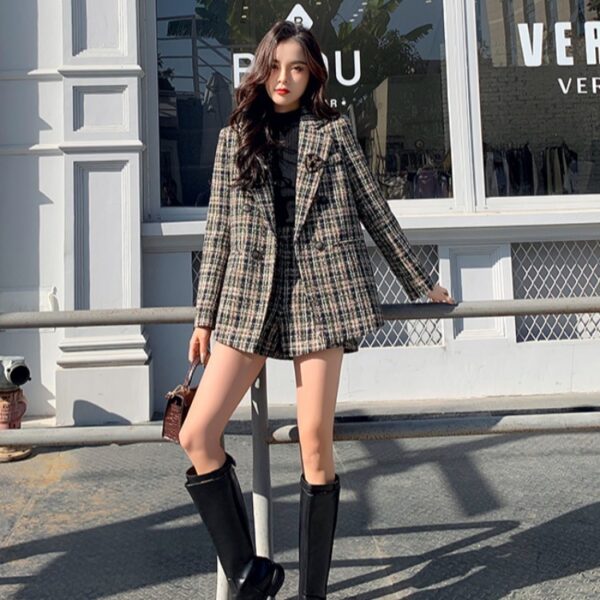 Woolen Plaid Suit Trendy New Style Temperament Suit Jacket Shorts Two Piece Women