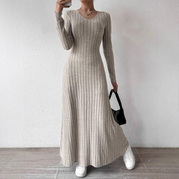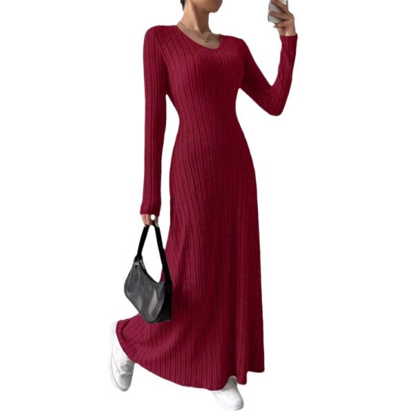 Women’s Slim Fit Fashionable Knitted Solid Color Long Sleeve Dress