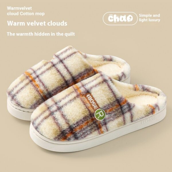 Women’s Home Plush Warm Non-slip Plaid Cotton Shoes