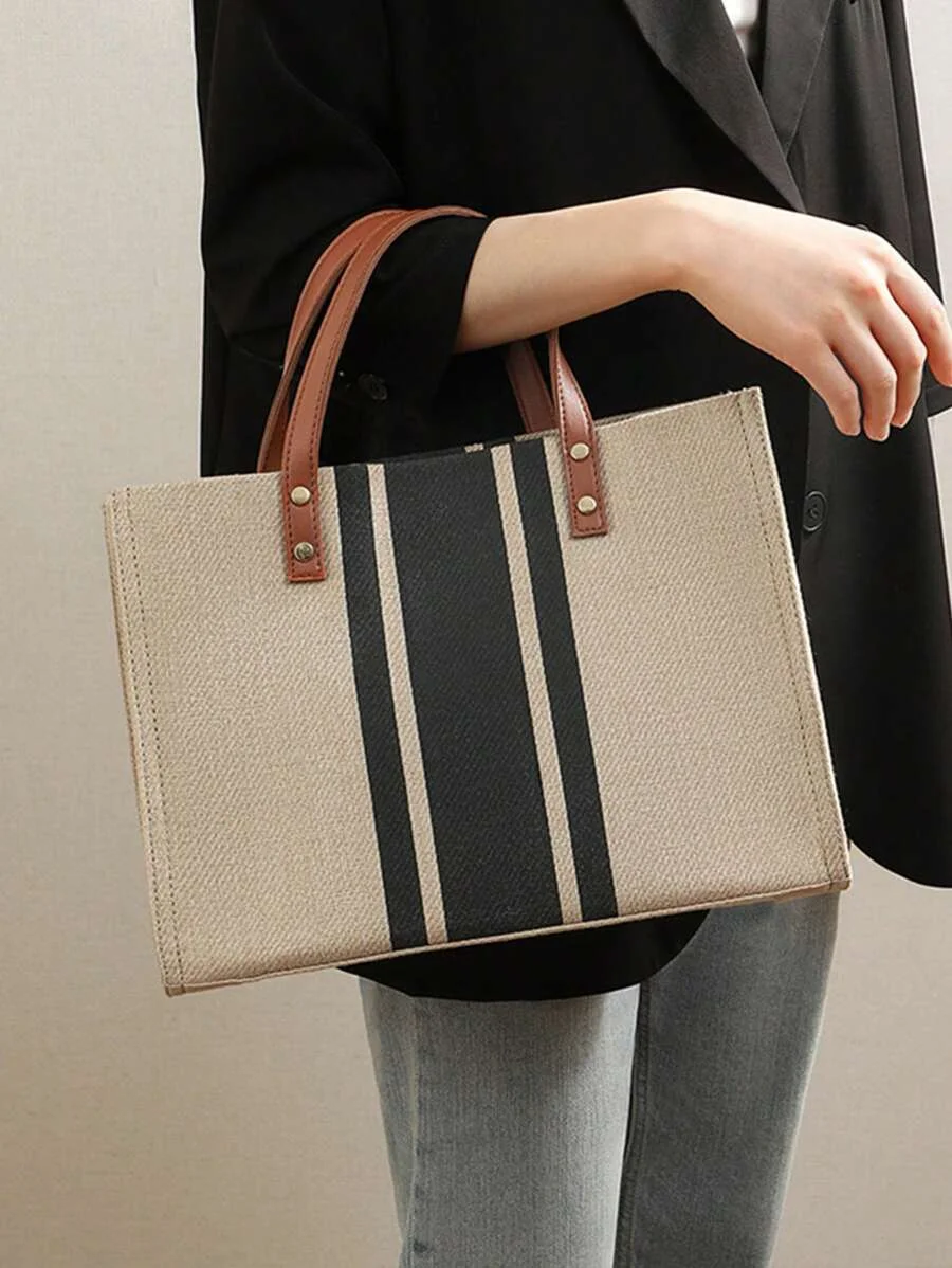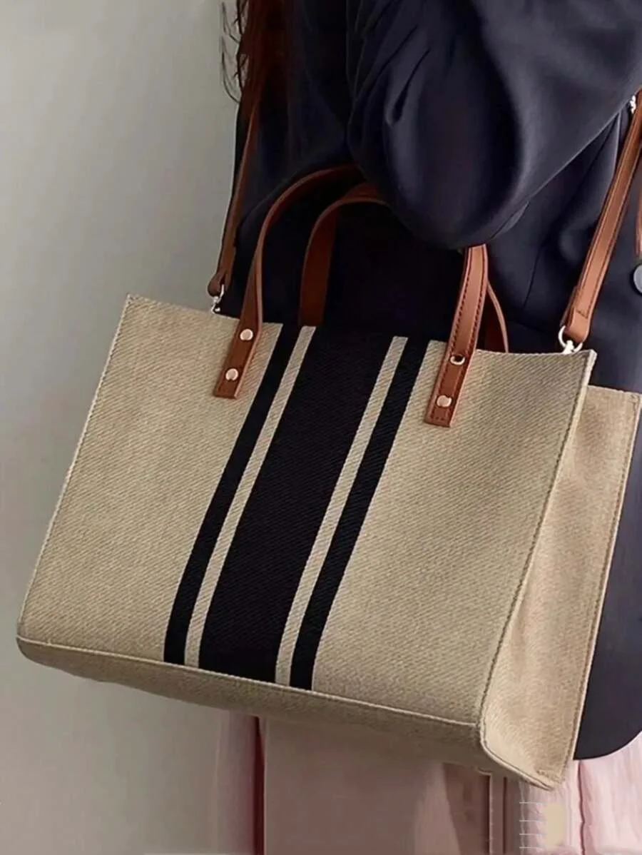 • الذهاب إلى العمل: تعتبر حقيبة اليد من الخيش خيارًا ممتازًا للذهاب إلى العمل، حيث يمكن حملها مع الملابس الرسمية أو الكاجوال.