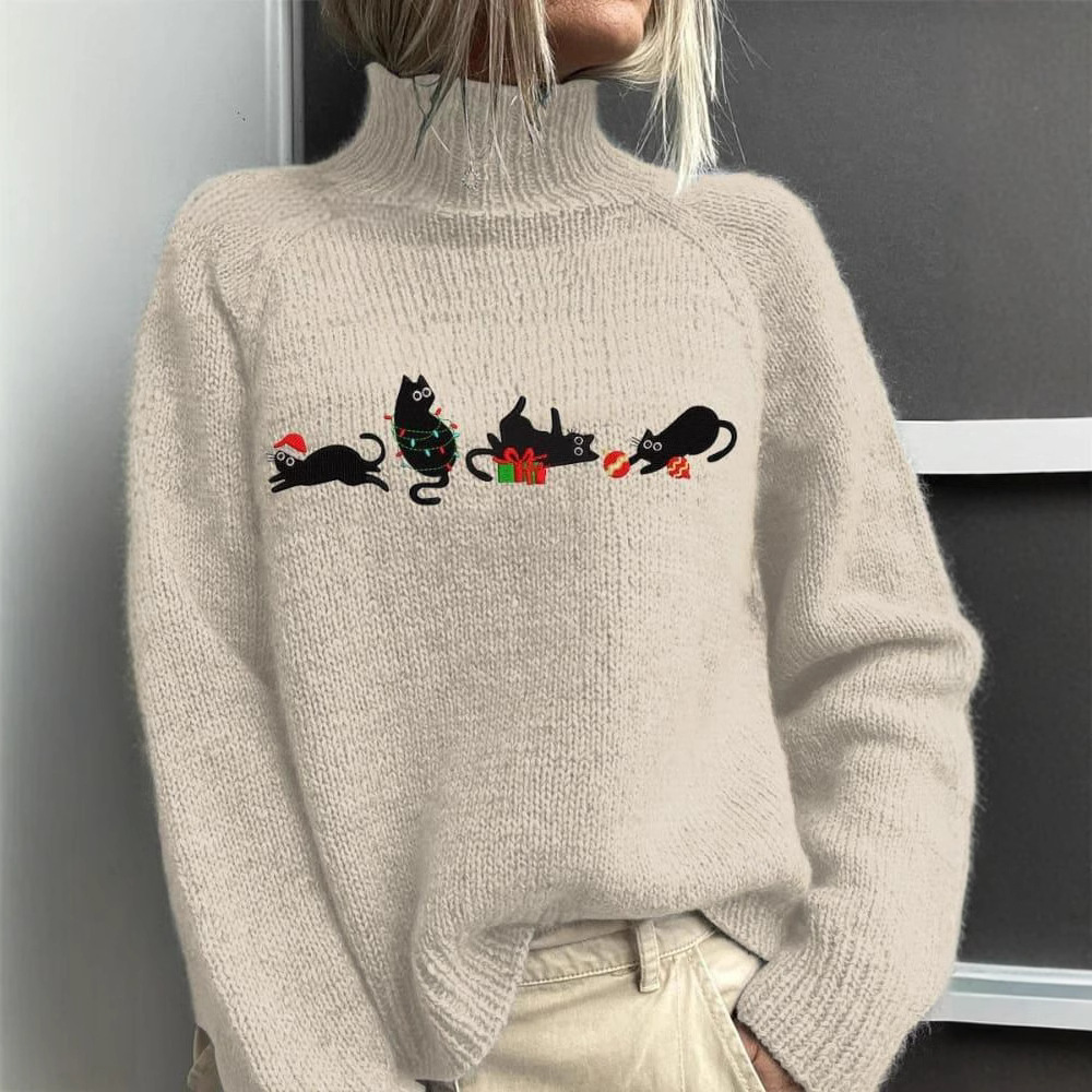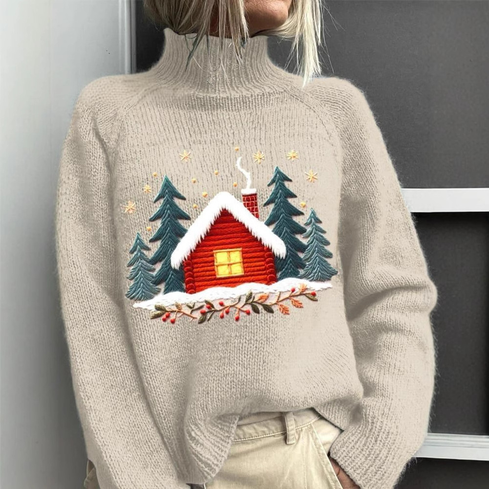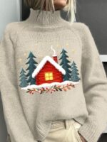 AutumnWinter Christmas Long-Sleeve Turtleneck Hoodie With Lapel Collar