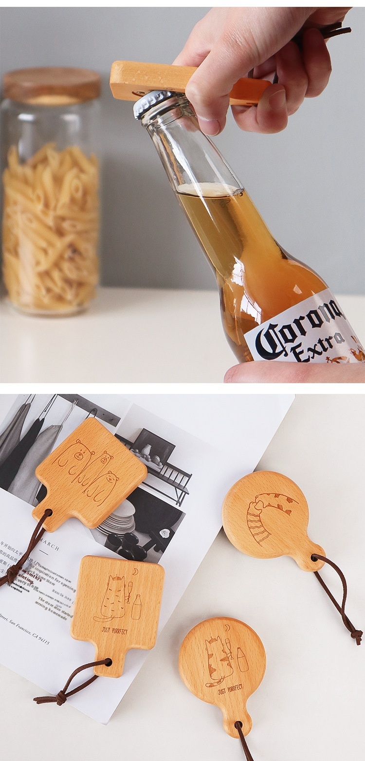 Creative Wooden Magnet Beverage Beer Bottle Opener