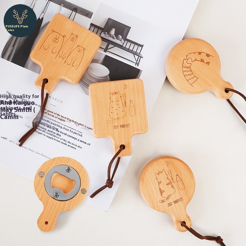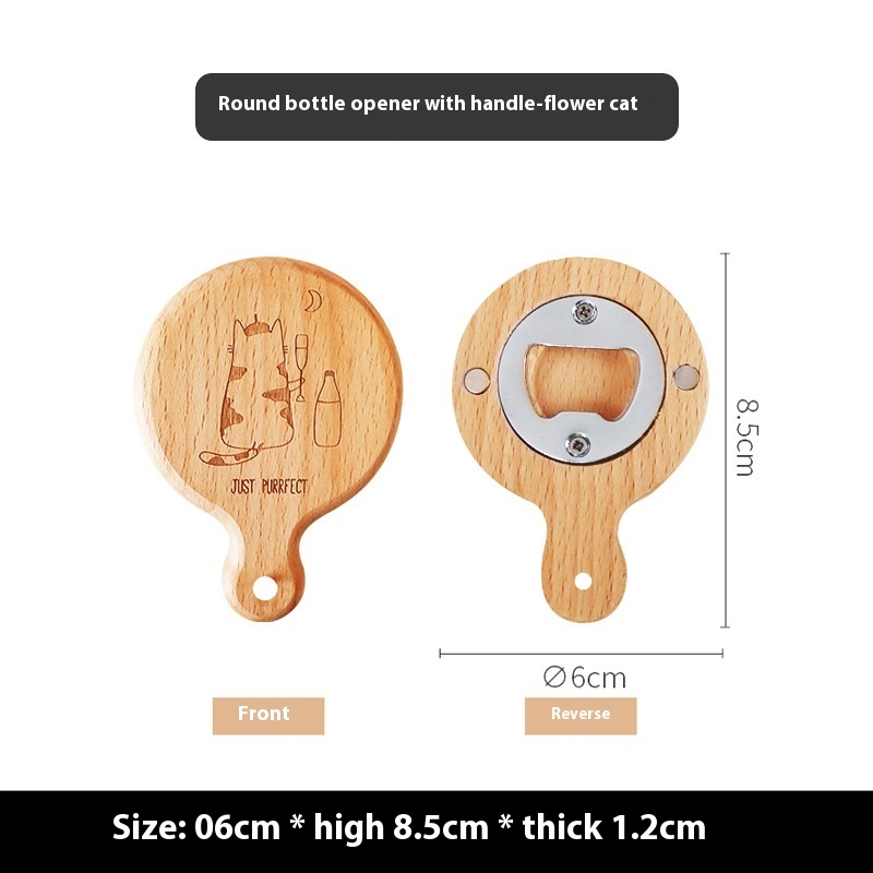 Color: Beech round band bottle opener cat’s paw, Beech round band bottle opener flower cat, Beech square with bottle opener spot cat, Beech square with bottle opener three bears, Beech with handle bottle opener round without logo, beech bottle opener with handle square without logo, Beech round band handle bottle opener (make a fortune), Beech round band handle bottle opener (Happy New Year)