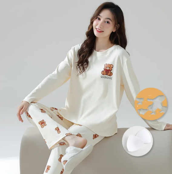Ladies’ Spring And Autumn Period Pajamas With Chest Pads