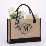 Large Capacity Portable Printing Initial Letter Jute Linen Shopping Bag