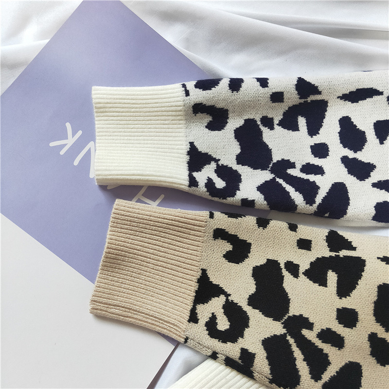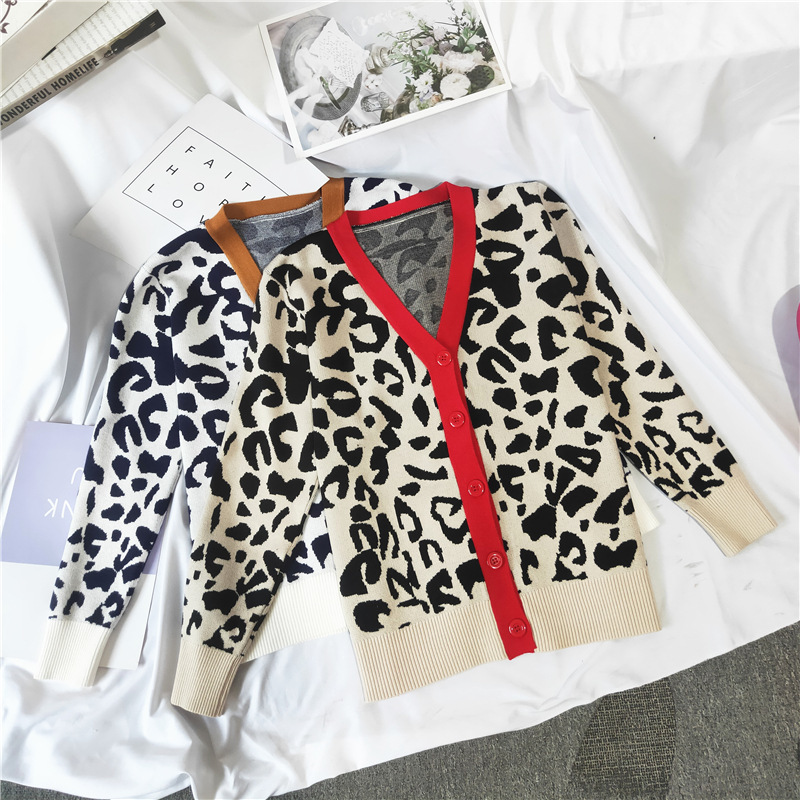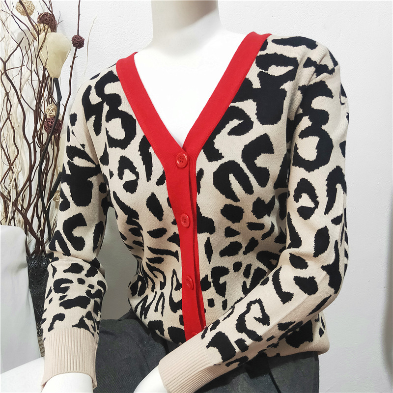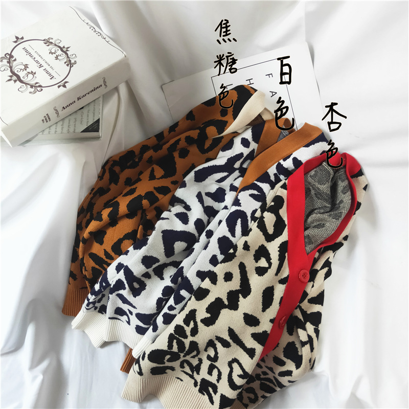 Leopard Print Sweater Cardigan Sweater Women’s Loose V-neck
