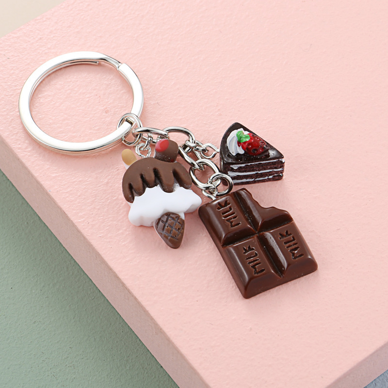 Resin Simulation Notched Chocolate Ice Cream Nameplate Keychain