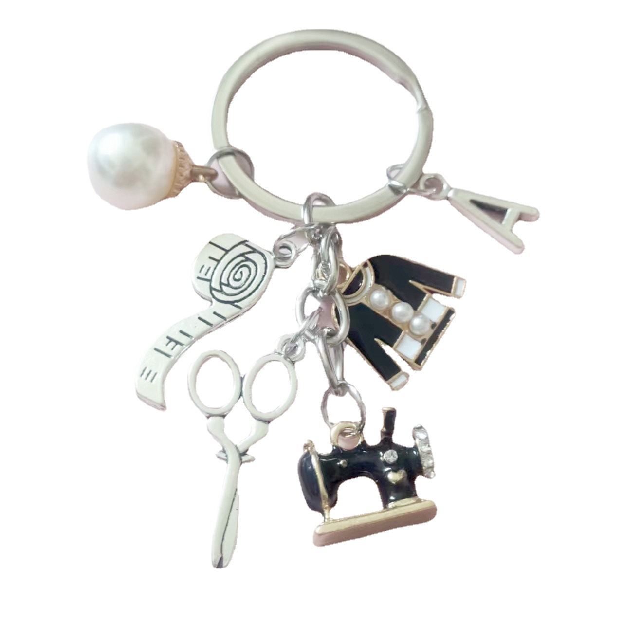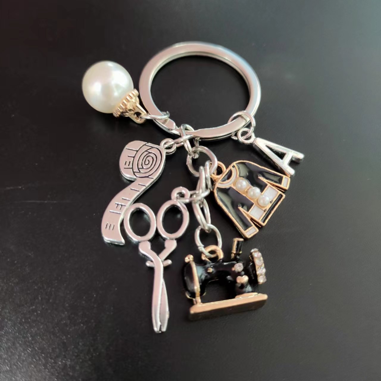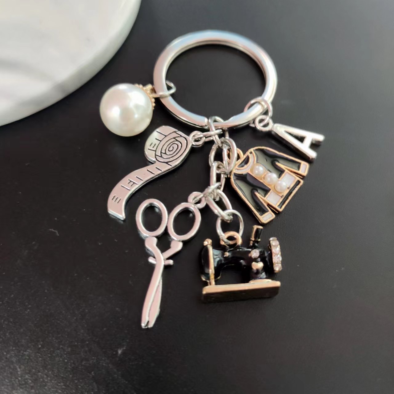 Sewing Machine Letter Scissors Tape Measure Clothes Pearl Keychain Tailor Clothing Designer Key Chain