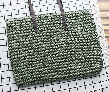 Women Handbag Summer Beach Bag Rattan Woven Handmade Knitted Straw Large Capacity Totes Leather Women Shoulder Bag Bohemia New
