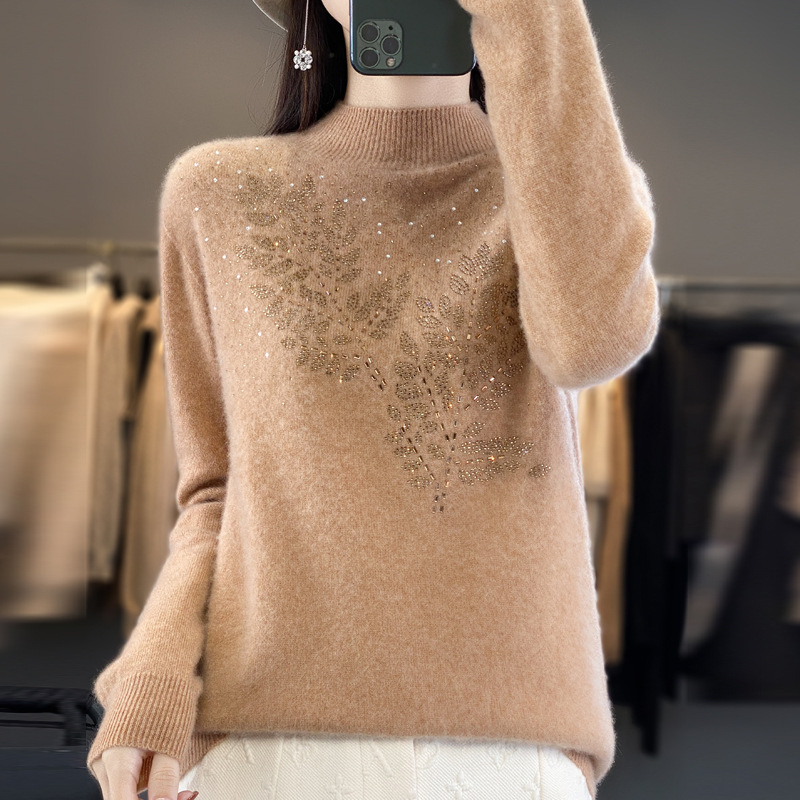 Women’s Loose And Versatile Semi High Neck Knitted Sweater