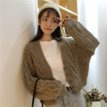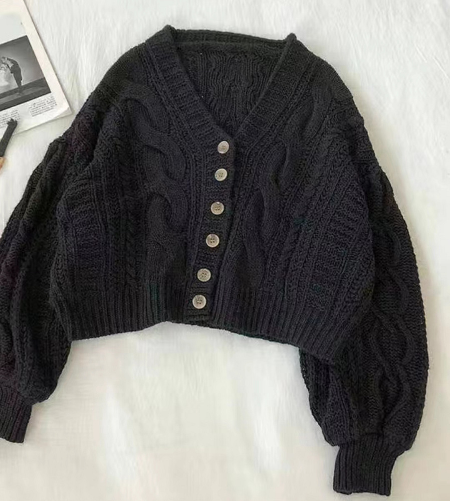 Women’s Short Twist Lantern Sleeve Sweater Coat