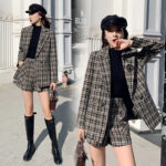 Woolen Plaid Suit Trendy New Style Temperament Suit Jacket Shorts Two Piece Women